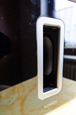 Vorallem sehr gelungen finde ich den Sub, da man diesen jetzt nicht mehr verstecken muss, sondern man kann ihn direkt in den Raum stellen und offen sichtbar. Durch das fehlen jeglicher Kabel, ausgenommen der Stromversorgung, ist dies auch problemlos möglich. Auch die schöne schwarz glänzende Oberfläche macht einen guten Eindruck. Sonos hat den Sub auch noch in einer schwarz-matten Version angekündigt, aber dieser ist noch nicht erhältlich.