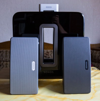 Auf der IFA-Preview bin ich das erste mal mit dem Sonos-Soundsystem in Verbindung gekommen und nach einer kurzen Demonstration wollte ich das System unbedingt einmal selber testen. Sonos hat mir hierzu zwei Play:3 Lautsprecher, den Sonos Sub und die Sonos Bridge zur Verfügung gestellt. Das schöne an diesem System ist, man kann es überall aufbauen, man benötigt lediglich nur einen Stromanschluss für die einzelnen Komponenten und es ist beliebig erweiterbar, egal ob drinnen oder draußen.
